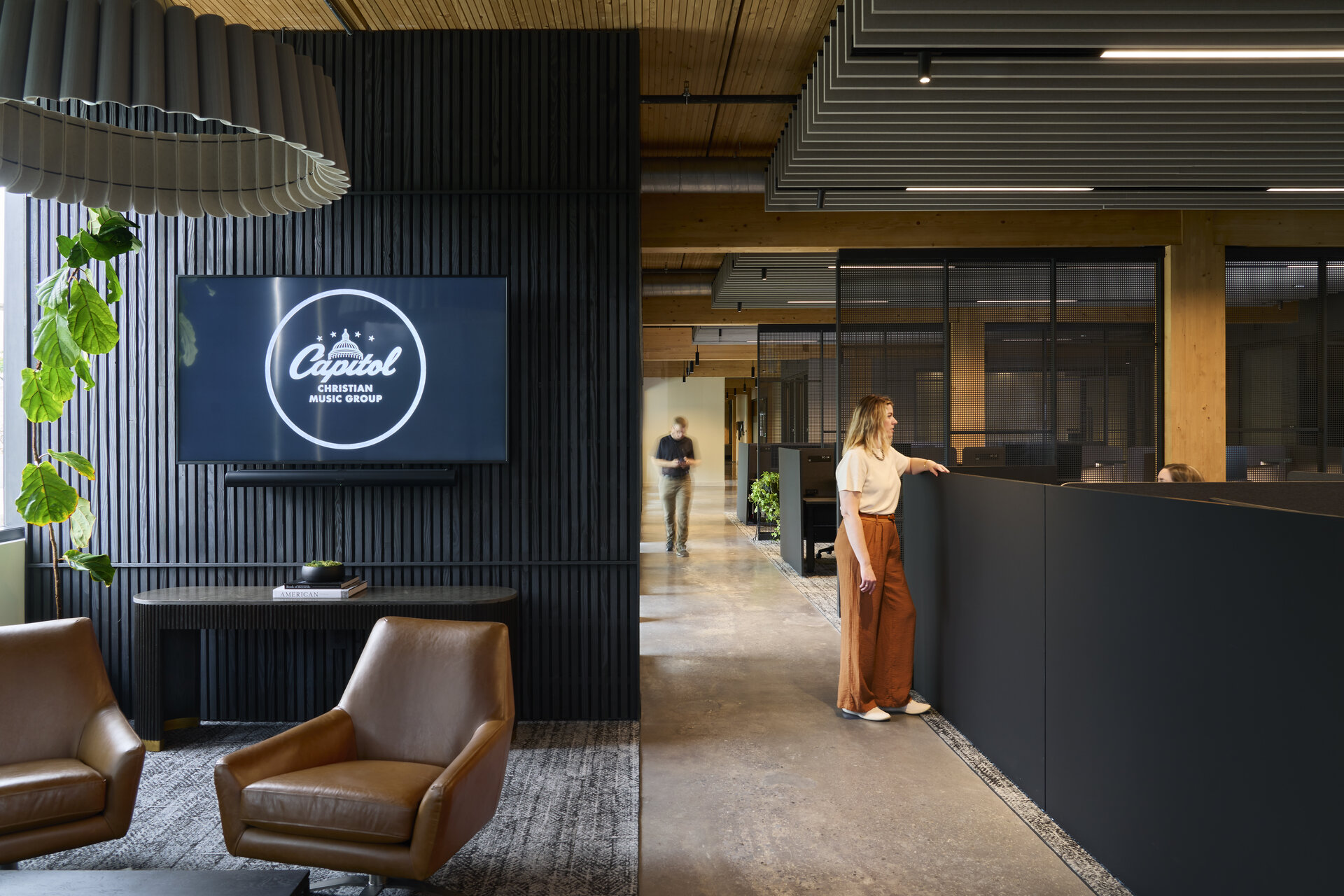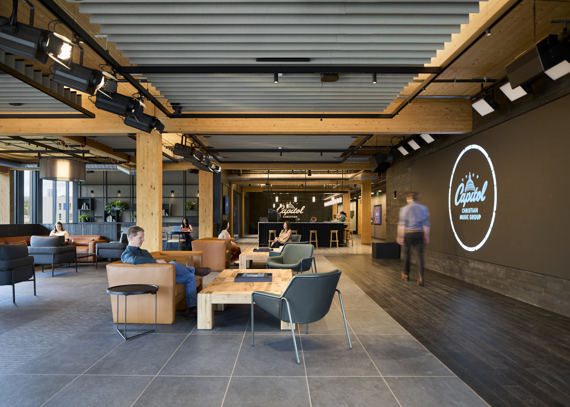 After a thirty-year tenancy in a Brentwood office park, Capitol Christian Music Group relocated their Nashville operations to a T3 building in the Wedgewood-Houston neighborhood. The urban neighborhood, innovative building structure, and dynamic office interiors aim to affirm CCMG as the leader in the faith-based entertainment industry.