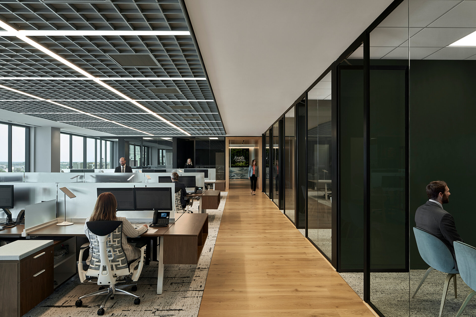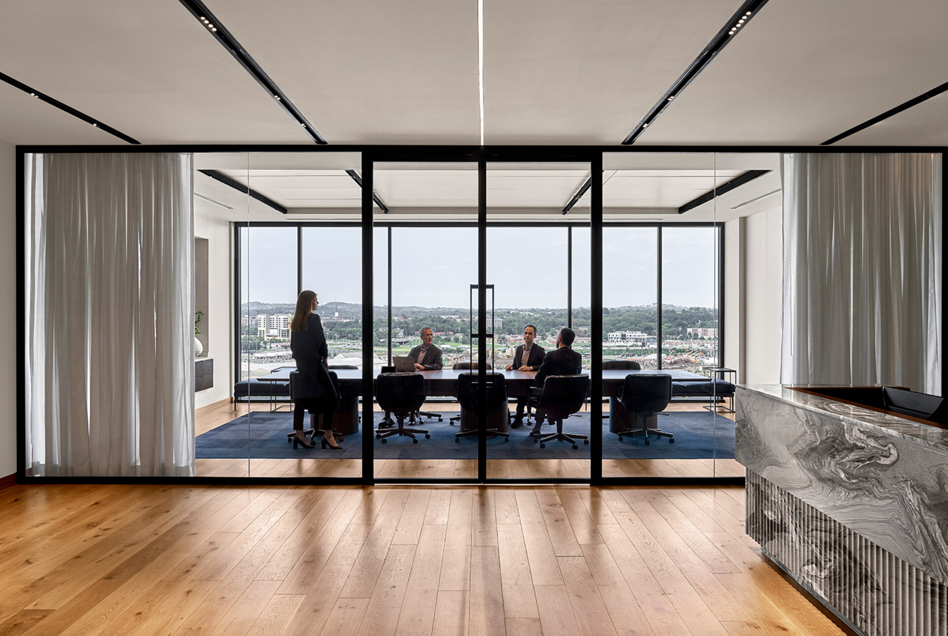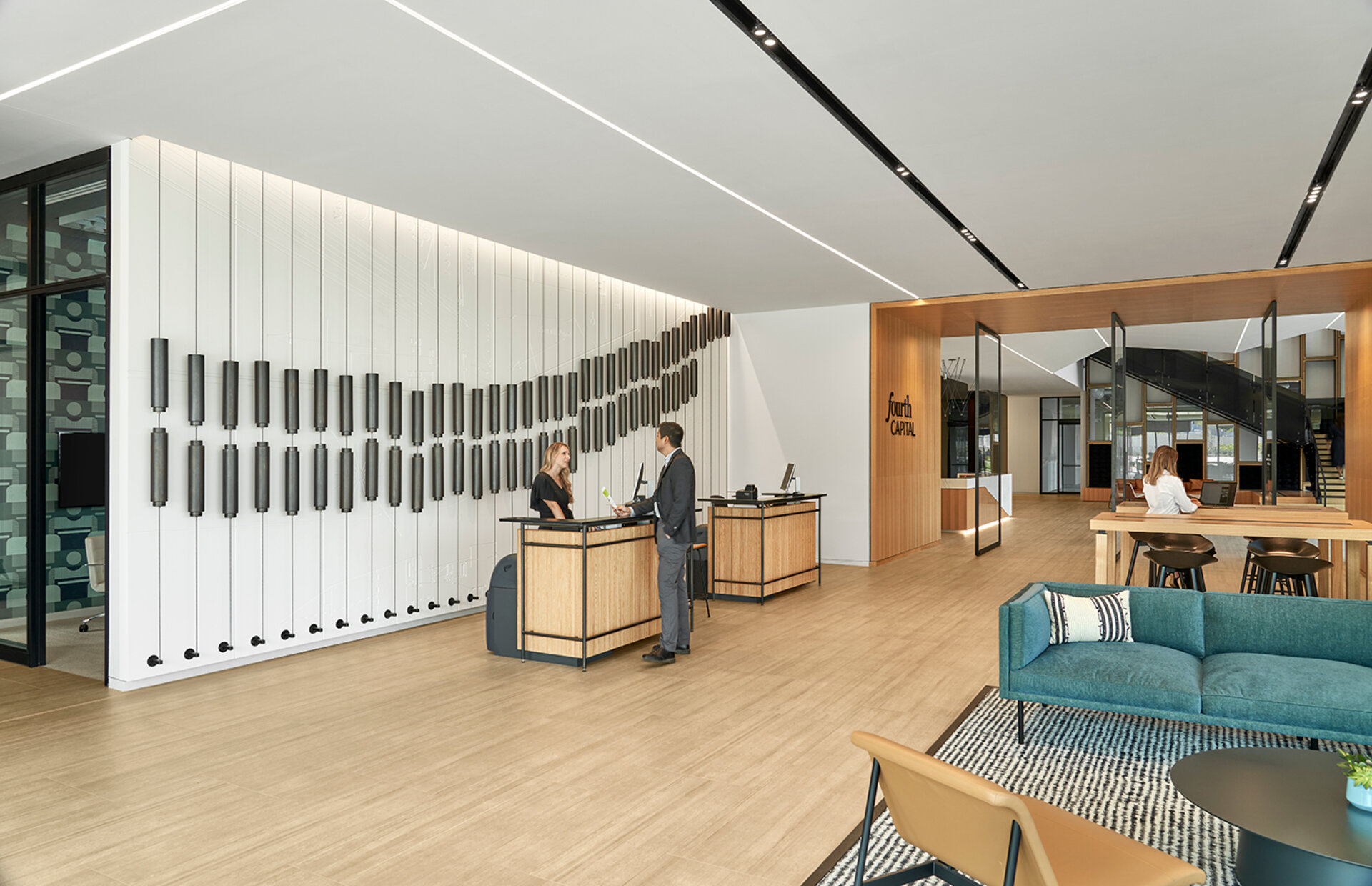 As the anchor tenant of the new Peabody Plaza building at Rolling Mill Hill, Fourth Capital is setting the bar for the future of banking. Both their ground-level customer retail space and ninth floor corporate office embody the personal and highly-customized nature of their banking model. Luxurious finishes and elegant furniture translate their boutique brand into an immersive experience for both employees and guests alike.