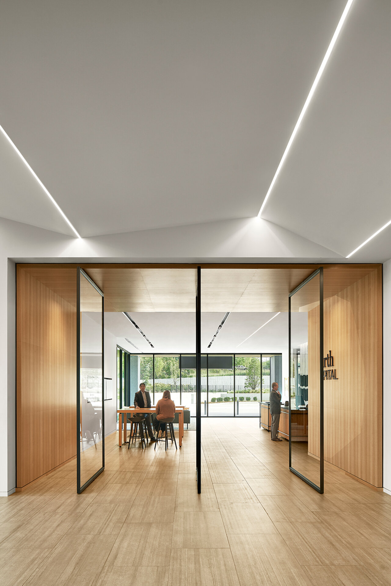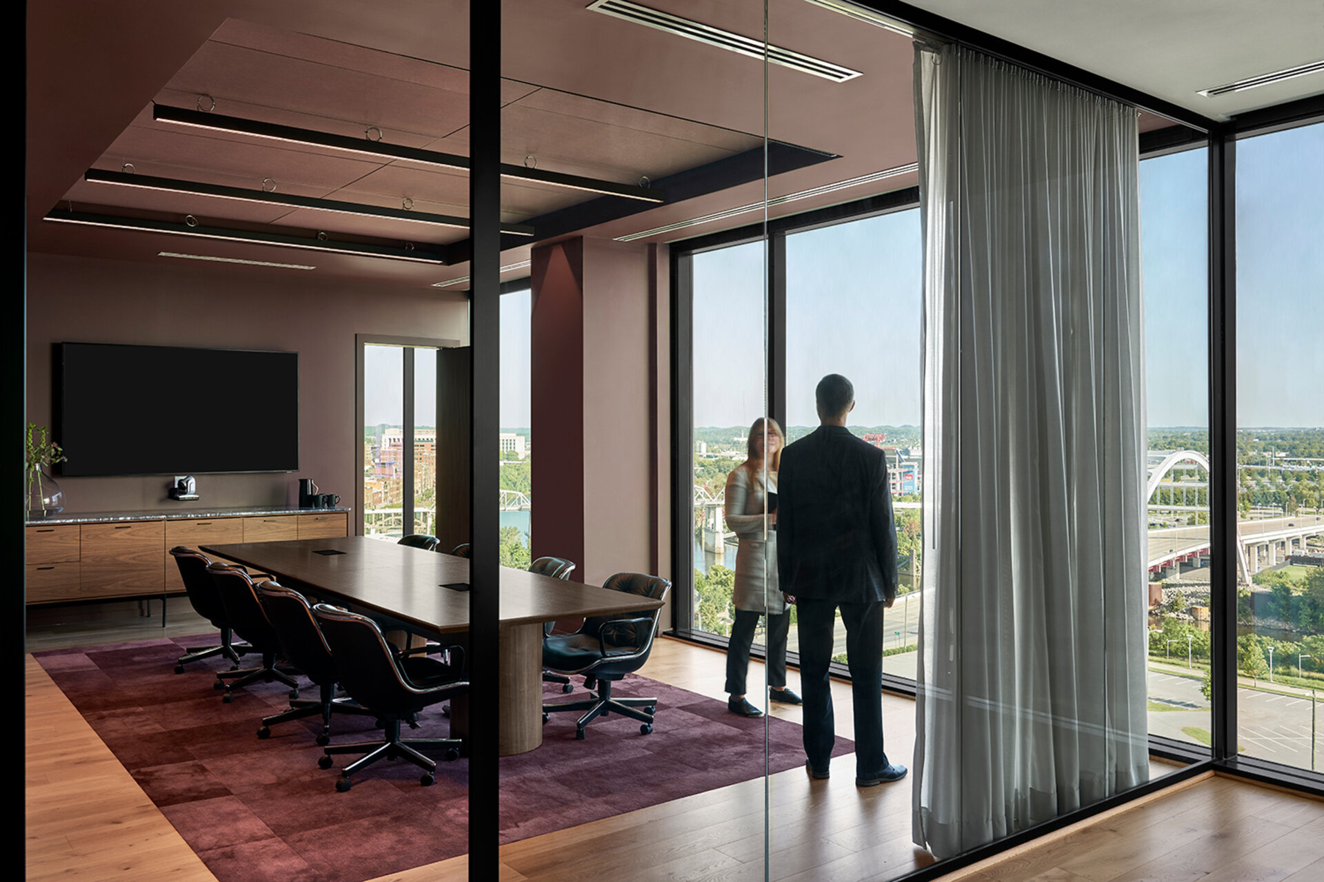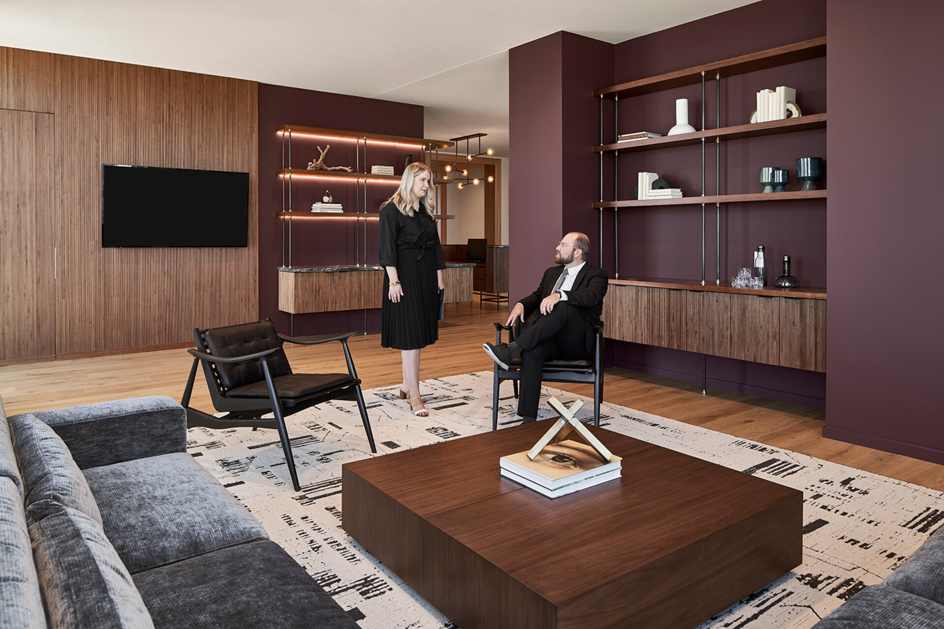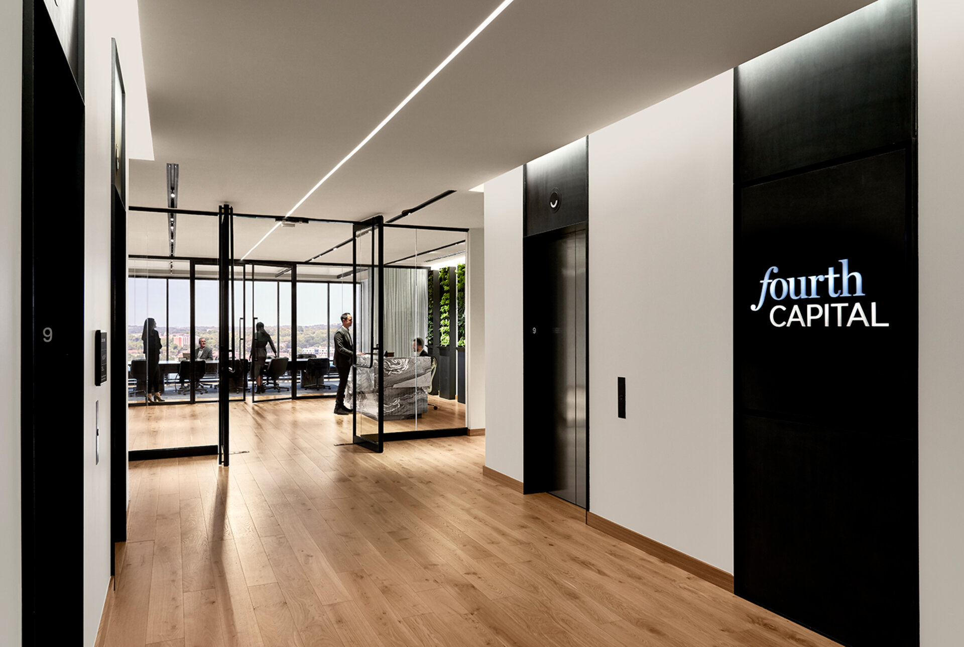As the anchor tenant of the new Peabody Plaza building at Rolling Mill Hill, Fourth Capital is setting the bar for the future of banking. Both their ground-level customer retail space and ninth floor corporate office embody the personal and highly-customized nature of their banking model. Luxurious finishes and elegant furniture translate their boutique brand into an immersive experience for both employees and guests alike.